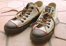 JEUDI 11/AVRIL/2002 「それが とびきり かわいんだって!」 もちろん 永遠のスタンダード、 あまり 乗り気ではない 私をさておき CONVERSE ( U.S.A.) ALL STAR 21OX。 見慣れた 限り無く完成されたフォルムに デッドストック、 褪せた なじみ感が 白のボトムに合わせて! 奥深いです... |