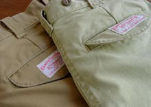 SAMEDI 4/ MAI /2002 MADE IN U.S.A.。 すとんと落ちる かるく ヒップで合わせて レディースでは 到底 見つけられない そのタフな風合いに そんな 飾り気のない メンズのパンツ、 いま 思えば お気に入り。 また、メンズのパンツ あの時の 気持ち、 |