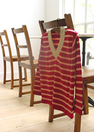 MERCREDI 8/ MAI /2002 季節のざわめきに 揺り動かされてか コーヒーをいれる 微睡んだ気分が 冴えてくるのを 自分の体の端々にまで 通ってく 今日は 素肌に 見慣れたはずのボーダー柄を JOHN SMEDLEY ( ENGLAND ) 伝統の 繊細なファインゲージニットと |