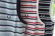 SAMEDI 18/ MAI /2002 これからの季節、 でも 今シーズンこそ FRED PERRY ( ENGLAND ) 英国オーセンティックスポーツウェアのマインドを カノコ素材に クラシックなボーダープリント。 こんな レトロな テイストを 懐かしい |