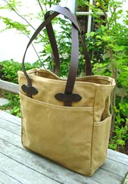 MERCREDI 22/ MAI /2002 使い込んだトートバッグ、 ぎっしり 荷物が 詰まった トートバッグ 女性が持つ 見慣れた ヘビーユーザーな 私達も 彼らの 荷物に負けないくらい FILSON ( U.S.A.)のトートバッグ。 とてもシンプルで、でも とても本物の |